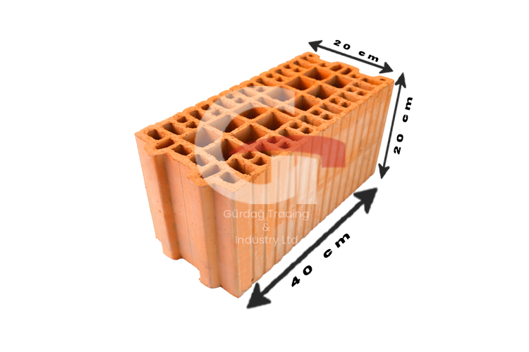 GÜRDAĞ 20'lik Ecotherm Blok Tuğla, 40 cm uzunluğu, 20 cm yüksekliği ve 20 cm genişliğiyle yüksek taşıma kapasitesi, termal konfor ve akustik izolasyonu bir arada sunan, çok yönlü bir yapı elemanıdır.
